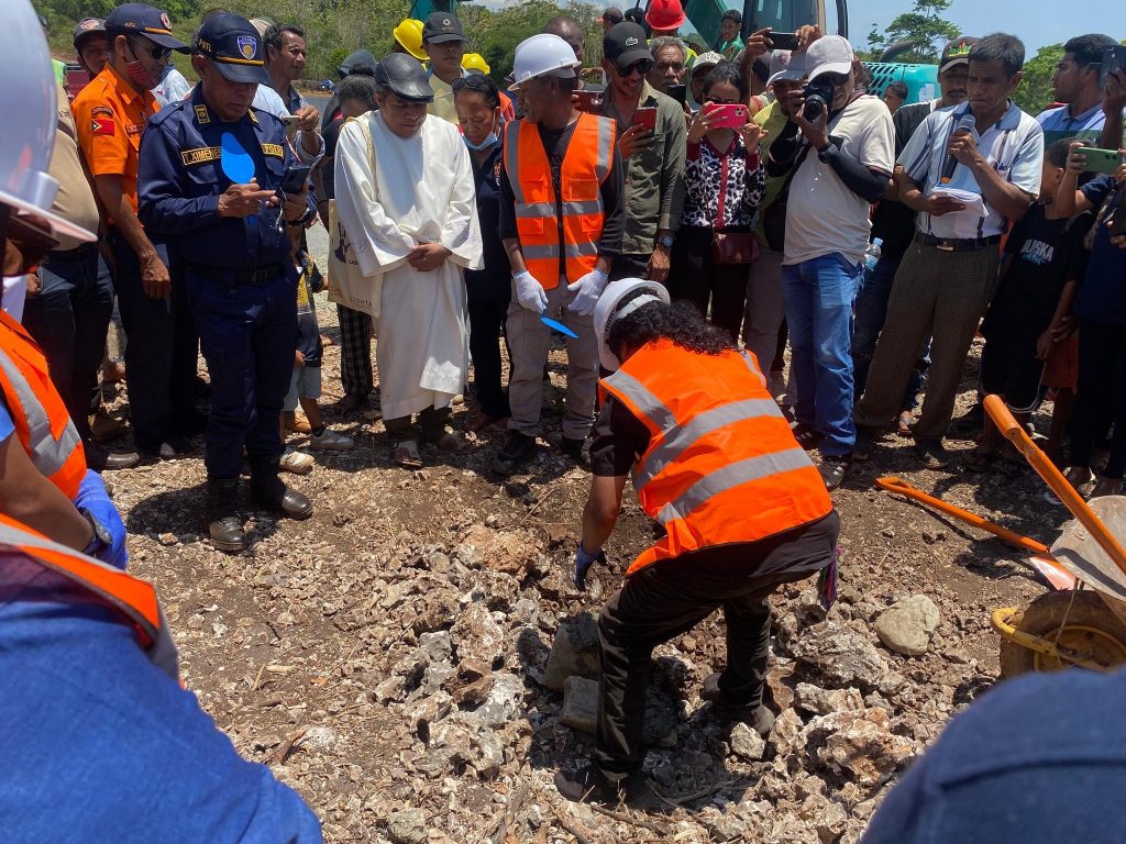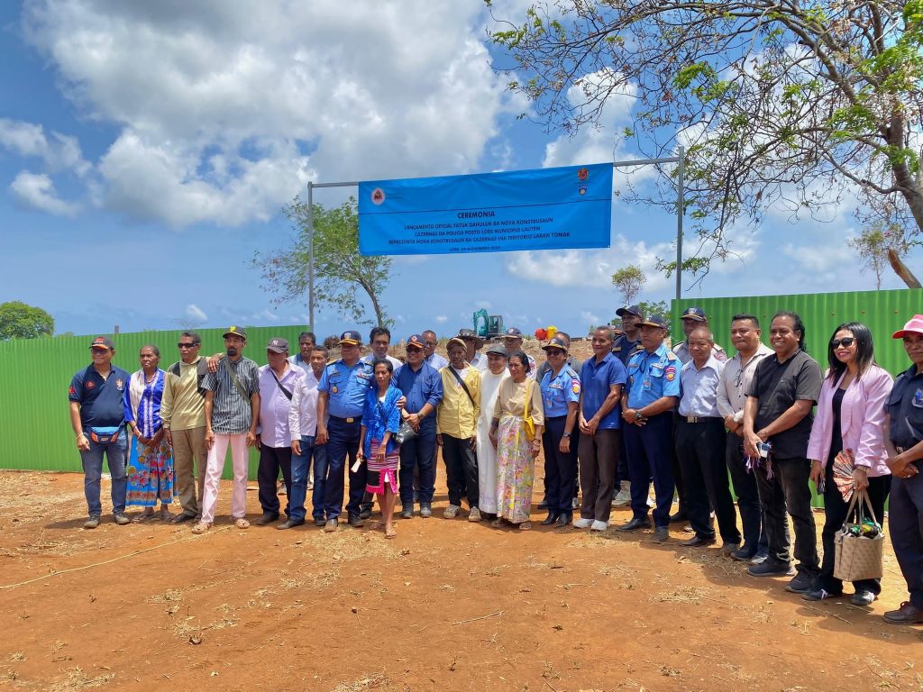 Reprezentante, Prezidente Autoridade Munisรญpiu Lautรฉm, Sekretรกriu Munisipรกl Planeamentu Investimentu no Dezenvolvimentu Integradu, ๐—ฆ๐—ฟ. ๐—ง๐—ถ๐—ฏ๐˜‚๐—ฟ๐˜€๐—ถ๐—ผ ๐—ฑ๐—ผ๐˜€ ๐—ฆ๐—ฎ๐—ป๐˜๐—ผ๐˜€, partisipa Serimรณnia Fatuk Dahuluk ba Konstrusaun Kazerna Polรญsiai Postu Administrativu Lore, Munisรญpiu Lautรฉm.