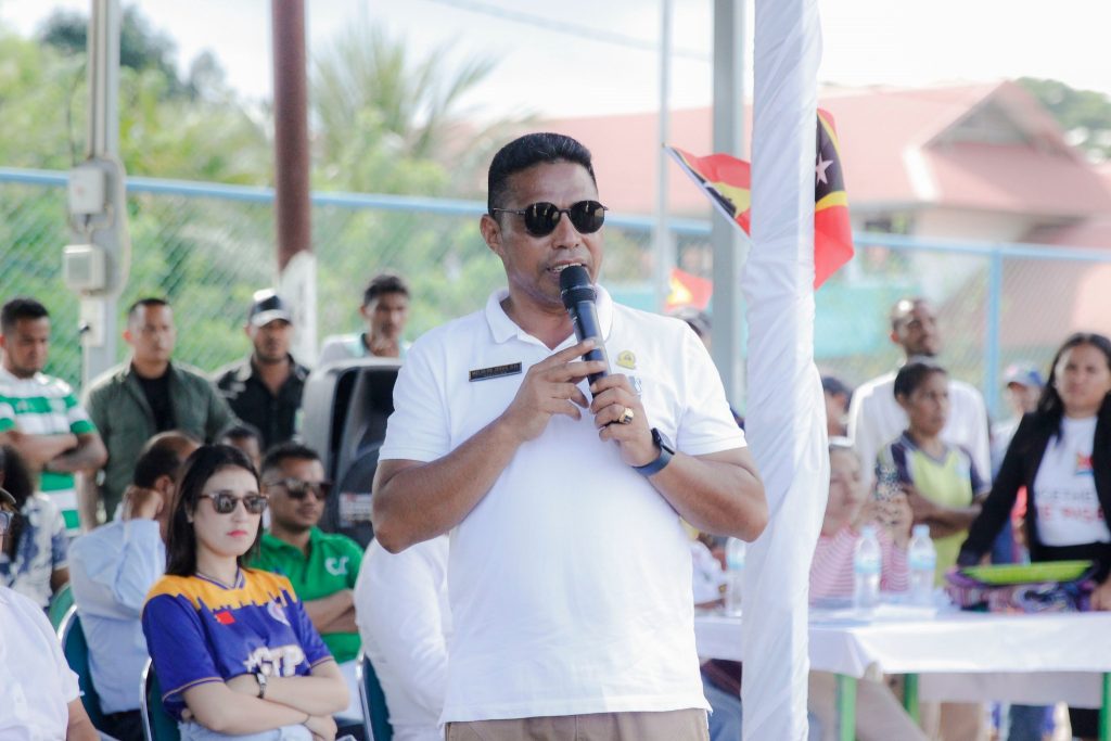 Iha intervensaun, ๐๐๐ฒ๐น๐ฒ๐ป๐๐ถ๐ฎ, Prezidente Autoridade Munisรญpiu Lautรฉm, ๐ฆ๐ฟ. ๐ รฉ๐น๐ถ๐ผ ๐ฑ๐ฒ ๐๐ฒ๐๐๐, ๐ฆ๐, hateten, ohin ita halaโo inaugural projetu PDIM 2024, neโebรฉ kompana, “Salve Unip.Lda”, nuโudar segundu lugar ba iha prosesu aprovizionamentu neโebรฉ halaโo husi komisaun avaliasaun ba Dokumentus mak ohoin loron ita inaugura ofisialmente ba projetu rehabilitasaun Kampu Futebol + Luto Haleu + Kampu Multi Funsaun + Basket + Volly + Valeta + Joging Street + Sintina Pรบbliku, serimรณnia inaugurasaun neโe organiza husi Autoridade Munisรญpiu Lautรฉm.