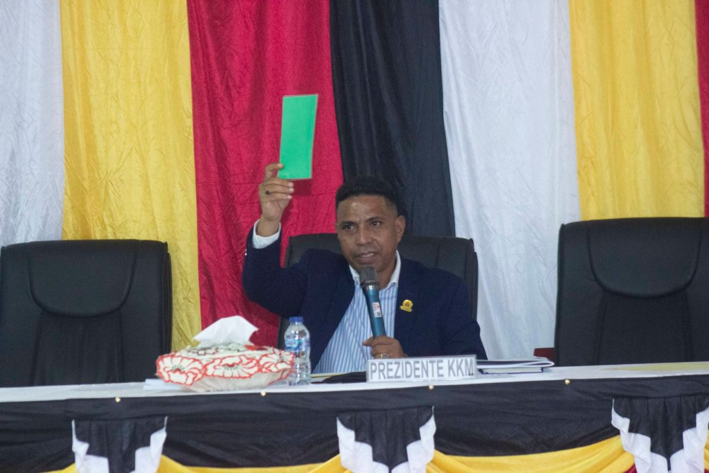 Hafoin remata intervensaun, ๐๐ฎ๐ ๐๐ฌ๐๐ฅรฉ๐ง๐ฌ๐ข๐, Prezidente Konsellu Koordenasaun Munisipรกl orienta ekipa tรฉkniku sira aprezenta kedas orรกriu ba preparasaun Vizita ๐๐ฎ๐ ๐๐ฌ๐๐ฅรฉ๐ง๐ฌ๐ข๐ Primeiru Ministru (PM-RDTL) ๐๐๐ฒ ๐๐๐ฅ๐ ๐๐๐ง๐๐ง๐ ๐๐ฎ๐ฌ๐ฆรฃ๐จ mai iha Munisรญpiu Lautรฉm, neโebรฉ hetan aprovasaun ho membru KKM liu husi votasaun ho Votus A-Favor (44) Kontra (0) no Abstensaun (0).