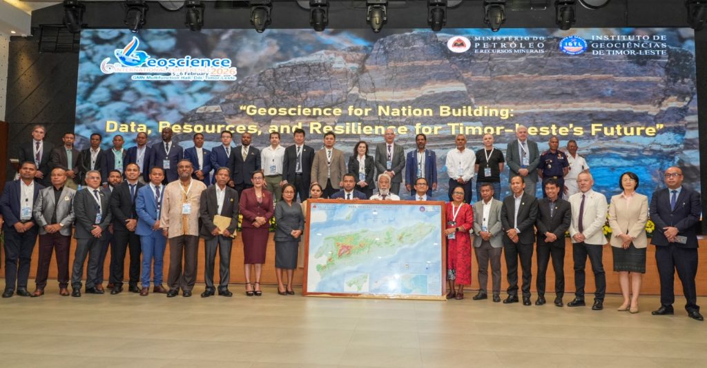 ๐’๐ฎ๐š. ๐„๐ฌ๐ž๐ฅรฉ๐ง๐ฌ๐ข๐š, Prezidente Autoridade Munisipรกl Lautรฉm ๐’๐ซ. ๐Œรฉ๐ฅ๐ข๐จ ๐๐ž ๐‰๐ž๐ฌ๐ฎ๐ฌ ๐’๐‡, partisipa Komferensia Internasional Geociensia ba da-6 ba futuru desenvolvimento Timor Leste nian, neโ€™ebรฉ organiza husi Instituto de Geociรชncias de Timor-Leste (IGTL) durante loron rua hahรบ iha loron 5 toโ€™o 6 fulan Fevereiru 2026, neโ€™ebรฉ halaโ€™o iha Salaun Multiuso GMN Bebora, Dรญli.