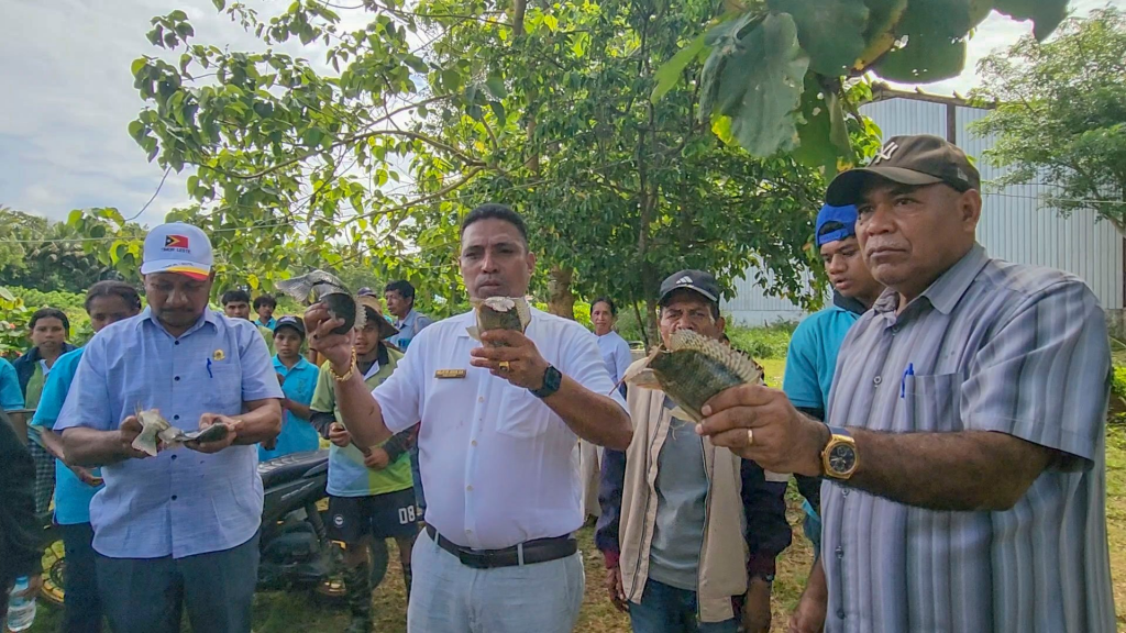 ๐’๐ฎ๐š ๐„๐ฑ๐ž๐ฅรฉ๐ง๐ฌ๐ข๐š, Prezidente Autoridade Munisipรกl Lautรฉm, akompaรฑa ho Sekretรกriu Munisipรกl Administrasaun no Finansas, Sekretรกriu Munisipรกl Asuntu Sosiais no Organizasaun Komunitรกria, Diretor Servisu Munisipรกl Agrikultura no funsionรกriu agrikultura sira hotu kolleita Batar hamutuk 0.9 hektar, Fore Rai hamutuk 0.5 hektar no kolleita Ikan Nila, atividade kolleita neโ€™e iha รกrea dores Administrasaun Autoridade Munisipรกl Lautรฉm.