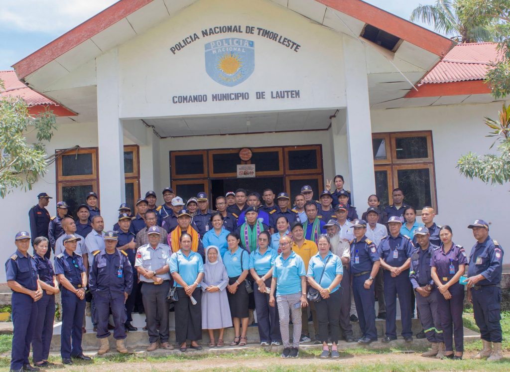 Reprezentante Prezidente Autoridade Munisipรกl Lautรฉm, Sekretรกriu Munisipรกl Planeamentu Investimentu no Dezenvolvimentu Integradu ๐ฆ๐ฟ. ๐ง๐ถ๐ฏ๐๐ฟ๐๐ถ๐ผ ๐ฑ๐ผ๐ ๐ฆ๐ฎ๐ป๐๐ผ๐ partisipa serimรณnia despedida kona-ba termu entrega ba Komandante Polรญsia Nasionรกl Timor-Leste (PNTL) Munisรญpiu Lautรฉm sesante ๐๐ผรฃ๐ผ ๐ฑ๐ฎ ๐๐ผ๐๐๐ฎ no Komandante Polรญsia Nasionรกl Timor-Leste (PNTL) Munisรญpiu Lautรฉm Atuรกl nomeadu ๐๐ฎ๐น๐ถ๐๐๐ผ ๐๐ผ๐ป๐๐ฎ๐ด๐ฎ, serimรณnia neโe halaโo iha Sala PNTL Munisรญpiu Lautรฉm.