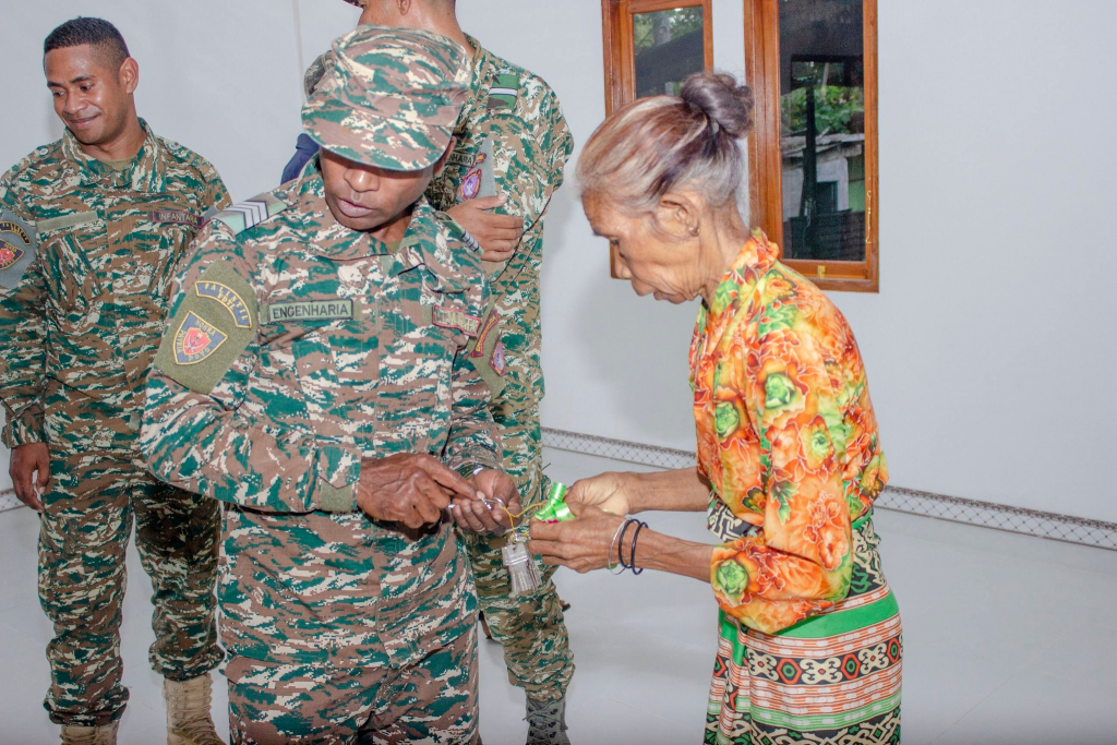 Iha fatin hanesan, reprezentante Xefe Estadu Maior Jenerรกl F-FDTL, Tenente Koronel Laurentino Gusmรฃo โ€œMau Ularโ€ hatutan mai iha fatin ida neโ€™e atu inaugura no entrega uma esperansa ba Inan faluk Maria Rosa, konstrusaun uma ida neโ€™e Planu husi Ministรฉriu Defesa (MD) hamutuk ho F-FDTL iha รกmbitu komemorasaun tinan 50 ba ezistรฉnsia Falintil.