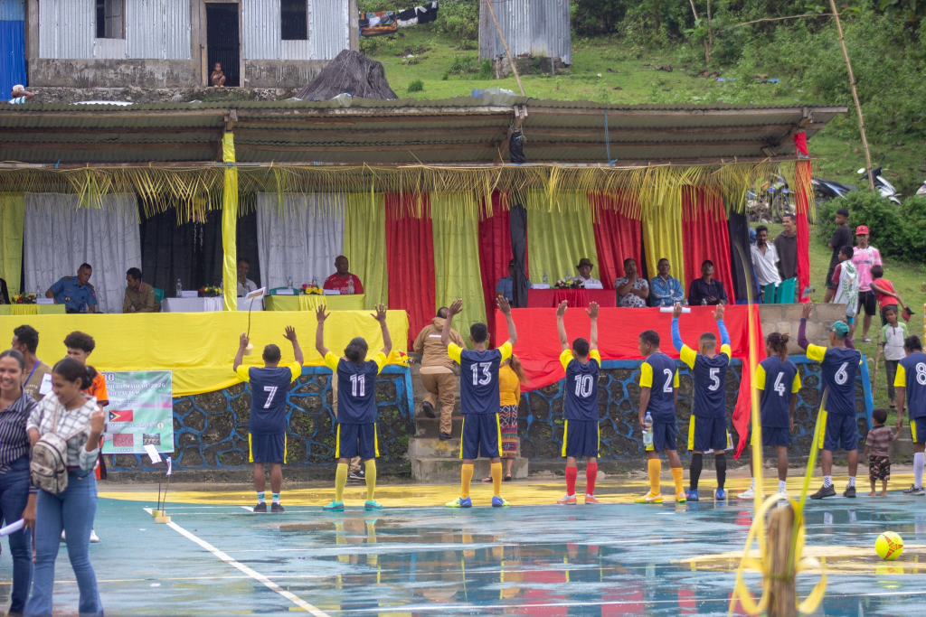 Reprezentante Prezidente Autoridade Munisipรกl Lautรฉm, Sekretรกriu Munisipรกl Planeamentu Investimentu Dezenvolvimentu no Integradu (PIDI), reprezentante Ministรฉriu Juventude Desportu Arte no Kultura, Komandante Polรญsia Nasionรกl Timor-Leste (PNTL) Munisรญpiu Lautรฉm, Administrador Postu Lospalos no Lider Komunitรกria sira halaโ€™o abertura ba jogu desportu komunitรกria hodi komemora loron Restaurasaun Independensia 20 de Maiu 2026, jogu refere halaโ€™o iha Kampu Futsal Leuro.