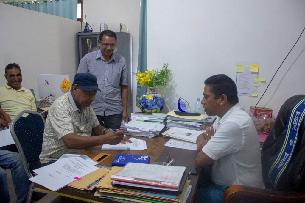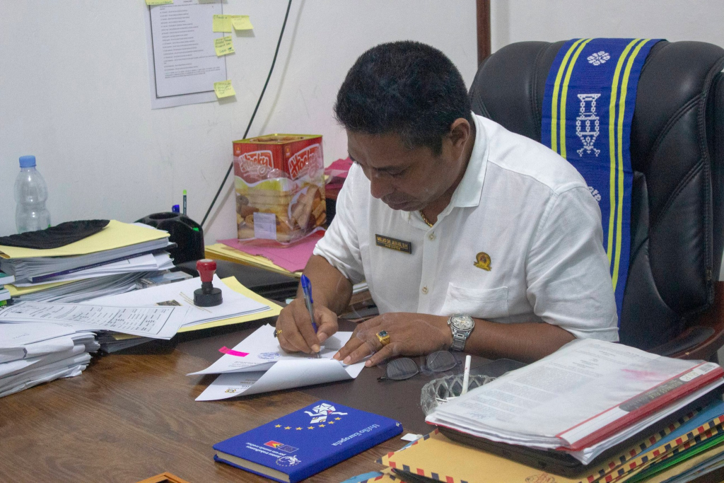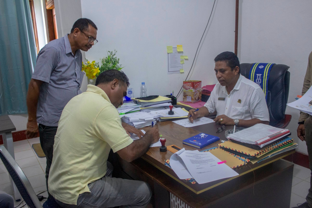 ๐—ฆ๐˜‚๐—ฎ.๐—˜๐˜€๐—ฒ๐—นรฉ๐—ป๐˜€๐—ถ๐—ฎ, Prezidente Autoridade Munisipรกl Lautรฉm hamutuk ho Diretรณr Servisu Munisipรกl Aprovizionamentu hahรบ fรณ selebra kontratu ba kompaรฑia lokรกl sira hamutuk 4 hodi implementa ba projetu Planu Dezenvolvimentu Integradu Munisipรกl (PDIM) ba tinan 2026 nian, selebra akordu neโ€™e halaโ€™o iha Sala Gabinete Prezidente Autoridade Munisipรกl Lautรฉm.