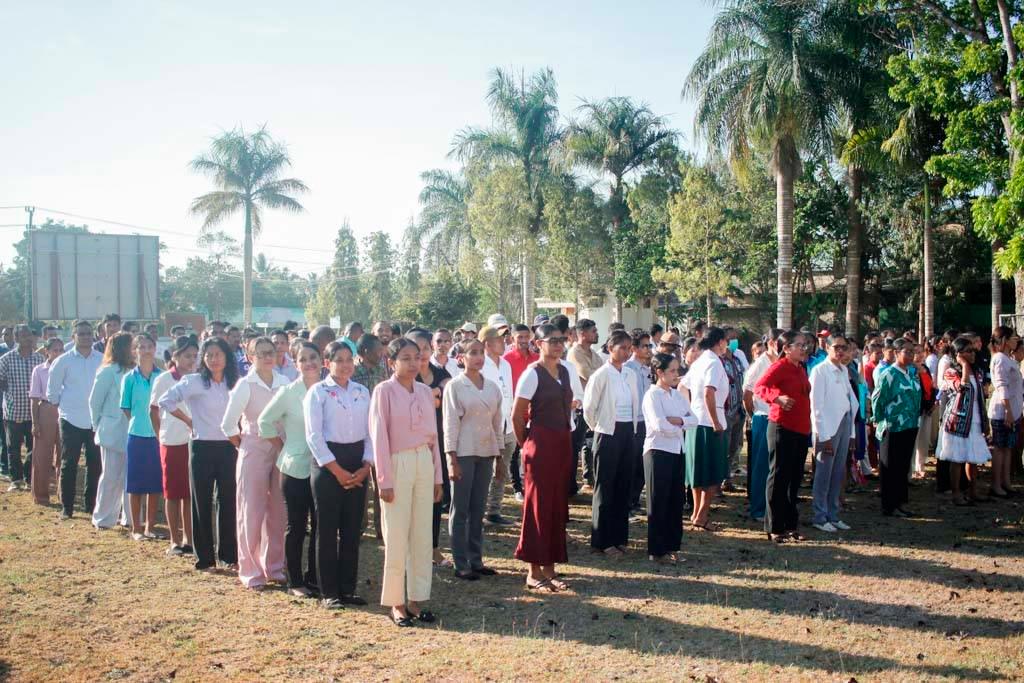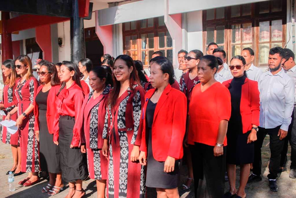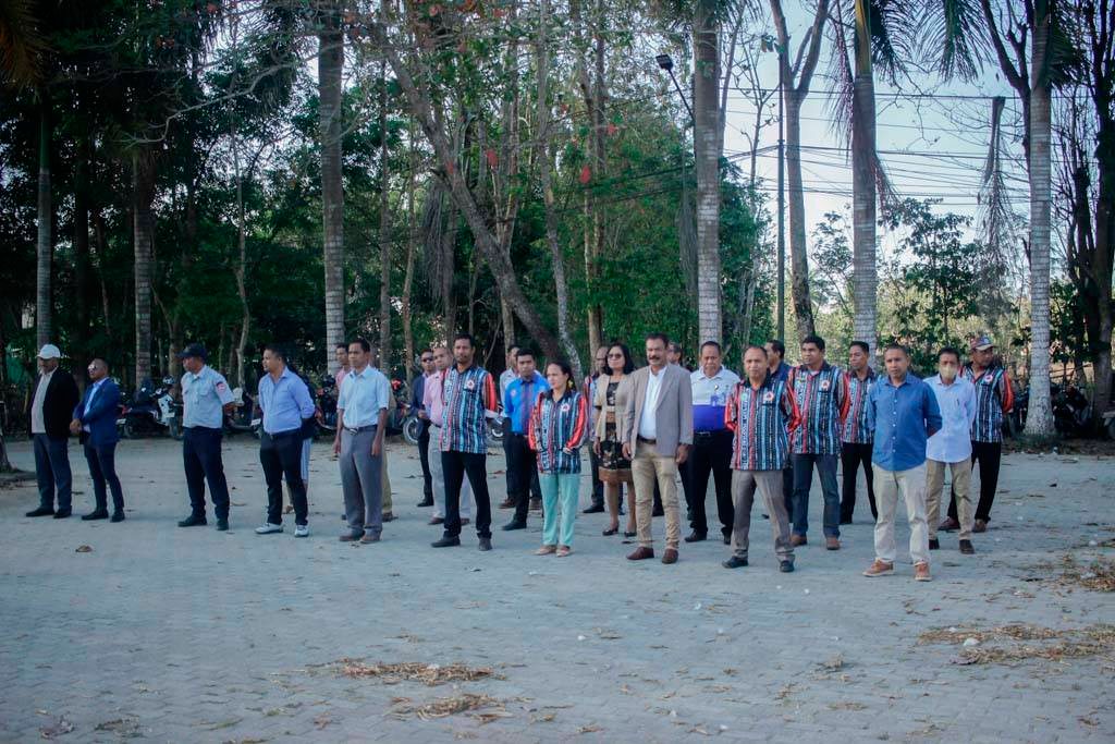 iha Intervensaun, reprezentante Prezidente Autoridade Munisipรกl Lautรฉm, Sekretรกriu Munisipรกl Assuntu Sosiais no Organizasaun Komunitรกria ๐—ฆ๐—ฟ. ๐—ญ๐—ฒ๐—ณ๐—ฒ๐—ฟ๐—ถ๐—ป๐—ผ ๐—ฑ๐—ผ๐˜€ ๐—ฆ๐—ฎ๐—ป๐˜๐—ผ๐˜€ ๐—ฆ๐—ฒ๐—พ๐˜‚๐—ฒ๐—ถ๐—ฟ๐—ฎ, husu ba funsionรกriu sira bainhira iha formatura ba serimรณnia Iรงar Bandeira Nasional tenke hamriik metin ho konsentrasaun, labele laโ€™o tun saโ€™e, hateke ba malu, nuneโ€™e mรณs labele lori sasรกn hanesan pasta no sasรกn sira seluk lori ba iha formatura laran.