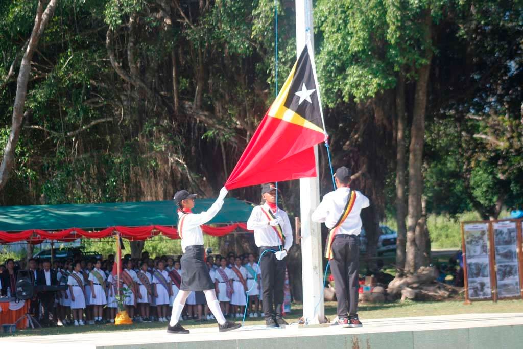 Autoridade Munisรญpiu hamutuk ho Povu Munisรญpiu Lautรฉm Komemora Aniversรกriu Istรณriku loron Proklamasaun Unilaterรกl Independรฉnsia ba dala-50 ho serimรณnia Isรกr Bandeira Nasionรกl solene ho tema โ๐๐ฎ๐ ๐ ๐๐๐ฅ๐๐๐ซ๐๐ฬง๐ฬ๐จ ๐๐๐ฌ๐ญ๐๐ฌ ๐๐ ๐๐ง๐จ๐ฌ, ๐๐จ ๐ฉ๐๐ฌ๐ฌ๐๐๐จ, ๐ง๐จ๐ฌ ๐๐ฌ๐ฌ๐๐ ๐ฎ๐ซ๐ ๐๐จ๐ง๐๐ข๐๐ง๐ฬง๐ ๐ง๐จ ๐ฉ๐ซ๐๐ฌ๐๐ง๐ญ๐ ๐ ๐๐ฌ๐ฉ๐๐ซ๐๐ง๐ฬง๐ ๐ง๐จ ๐๐ฎ๐ญ๐ฎ๐ซ๐จโ neโebรฉ halaโo iha Kampu 28 Novembru Postu Lospalos Vila.