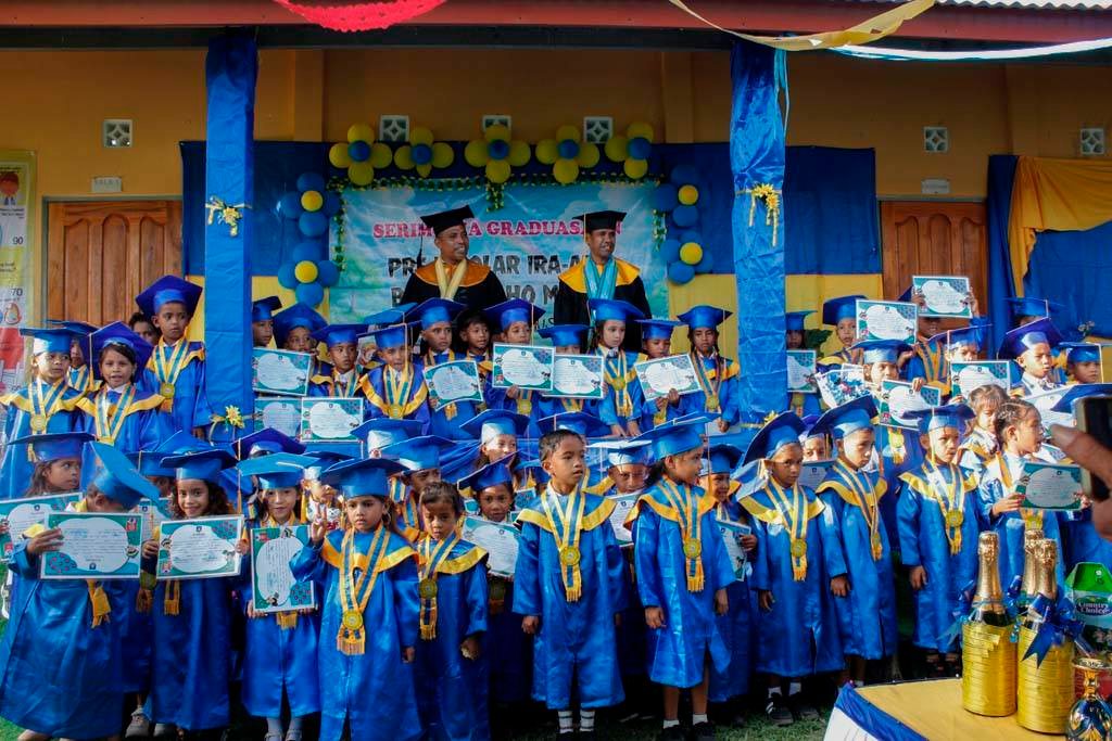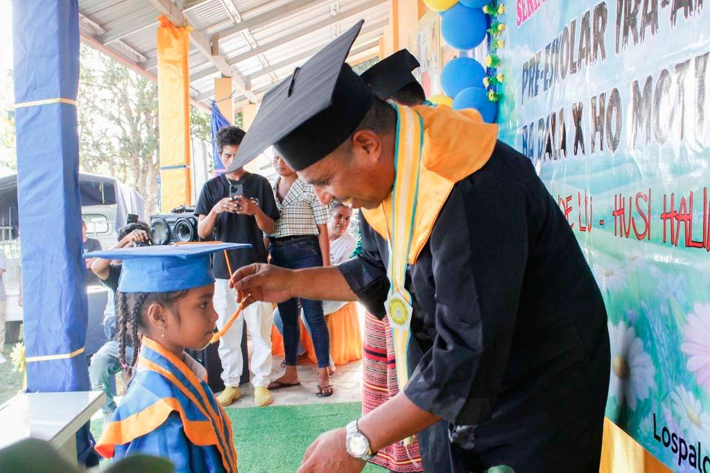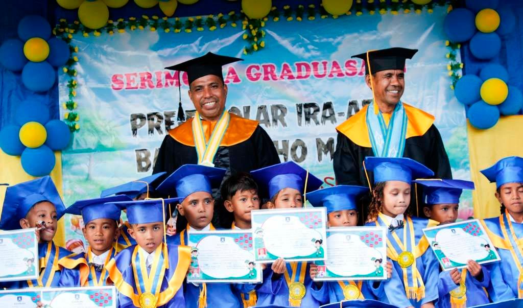 Eskola Pre-Eskolar Ira-Ara Lospalos, realiza Serimรณnia Graduasaun ba dala X, ba Estudante sira hamutuk naโin 55, neโebรฉ ho tema ba Graduasaun neโe mak “๐๐จ๐ ๐ค๐ก๐ ๐๐ง๐-๐๐จ๐ ๐ค๐ก๐๐ง (๐๐๐) ๐ก๐๐ช ๐๐ช๐จ๐ ๐๐๐ก๐๐ข๐๐ง”, Estudante hirak neโe tuir prosesu aprendizajen durante tinan ida, hodi prepara kontinua sira nia estudu iha Ensinu Bรกziku Primeiru Ano, tamba Pre-Eskolar mak sai baze ba dezenvolvimentu kapasidade no mentalidade ba estudante sira, enkuantu Graduasaun neโe husi Prezidente Autoridade Munisipรกl Lautรฉm, Diretor Servisu Munisipรกl Edukasaun Munisรญpiu Lautรฉm mak fรณ Gradua ba estudante sira neโebรฉ halaโo iha area dores Eskola Pre-Eskolar Ira-Ara Lospalos.