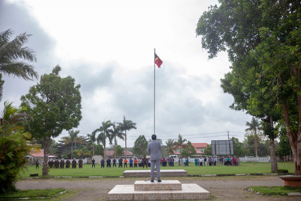 Autoridade Munisipรกl Lautรฉm, realiza Serimรณnia Iรงar Bandeira Nasionรกl ba semana dahuluk fulan Marsu, ne’ebรฉ prezidente husi reprezentante Prezidente Autoridade Munisipรกl Lautรฉm, Sekretariu Munisipรกl Planeamentu Investimentu no Dezenvolvimentu Integradu, ne’ebรฉ responsavel husi Direasaun Servisu Munisipรกl Agrikultura no Servisu Munisipรกl Seguransa Alimentar, ne’ebรฉ halaโ€™o iha resintu Administrasaun Autoridade Munisipรกl Lautรฉm.