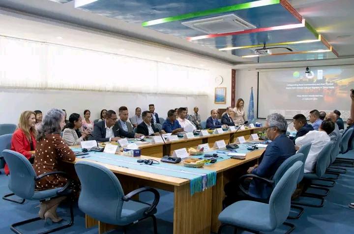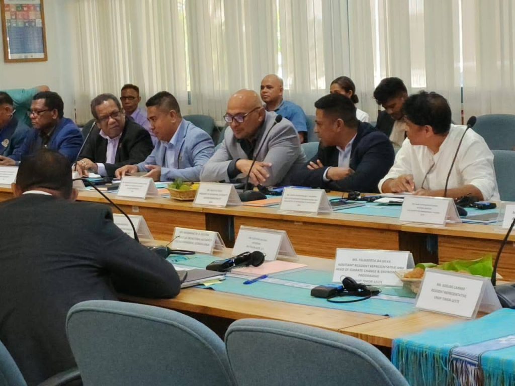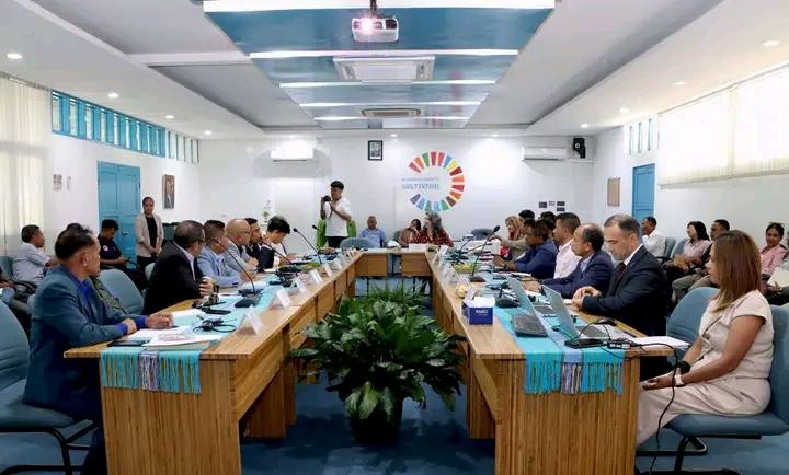 ๐’๐ฎ๐š ๐„๐ฌ๐ž๐ฅรฉ๐ง๐ฌ๐ข๐š, Prezidente Autoridade Munisipรกl Lautรฉm, ๐’๐ซ. ๐Œรฉ๐ฅ๐ข๐จ ๐๐ž ๐‰๐ž๐ฌ๐ฎ๐ฌ ๐’๐‡, partisipa enkontru kona-ba finรกl Project Board Meeting Safeguarding Rural Communities And Their Phisical Assets From Climate-Induced Desasters in Timor-Leste, sorumutu neโ€™e organiza husi UNDP ne’ebรฉ halaโ€™o iha Sala reuniaun Kofi Anan Meeting Room Caicoli.