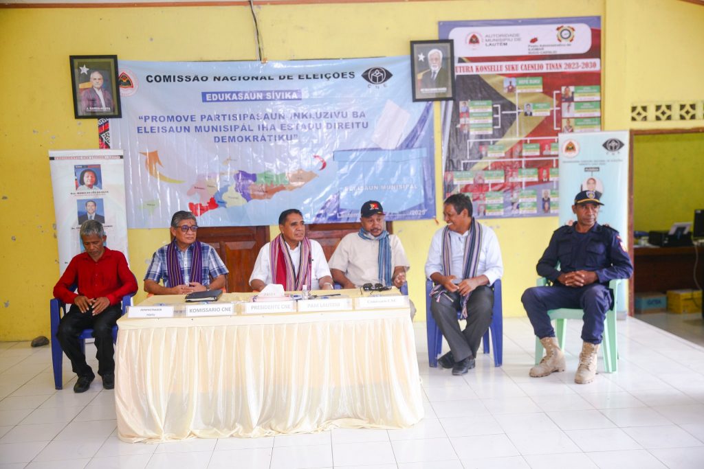 Iha intervensaun, reprezentante Prezidente Autoridade Munisipál Lautém, Sekretáriu Munisipál Asuntu Administrasaun no Finansas, Sr. Francisco dos Santos hateten, CNE nu’udar orgaun ida ne’ebé Eleitoral ho nia kn’ar ba fiskalizasaun atu hato’o Edukasaun Sivika ba Votante sira hotu.