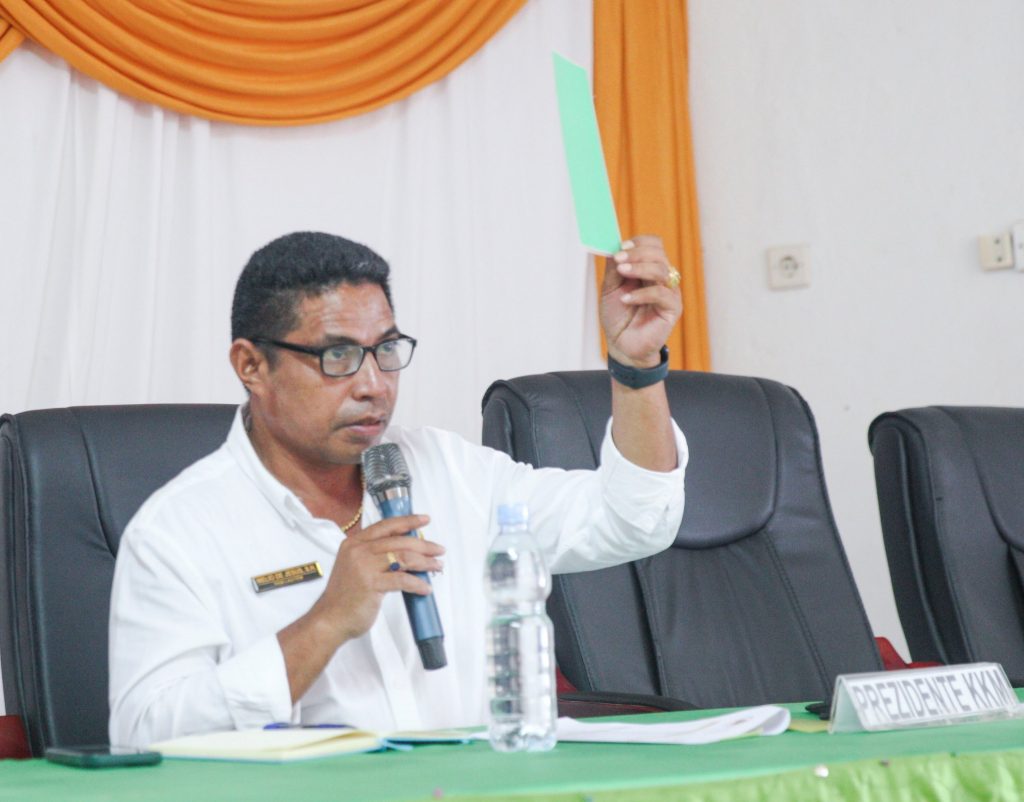 𝗦𝘂𝗮.𝗘𝘀𝗲𝗹é𝗻𝘀𝗶𝗮, Prezidente Autoridade Munisipal Lautem, nu’udar Prezidente Konsellu Koordenasaun Munisipál (KKM), lidera sorumutu Konsellu Koordenasaun Munisipál ikus ba tinan 2025 nian hamutuk ho membru KKM sira hodi diskute no atu aprova kona-ba Ordem Traballu rua ne’ebé kompostu husi Pronunsia Nota Informativa MAE sobre Avaliasaun Kondisaun Minima no ajenda segunudu mak fô Apresiasaun no Aprovasaun ba Planu Estratéjiku Munisipál Lautém (2025-2030) sorumutu ne’e hala’o iha Salaun Administrasaun Autoridade Munisipál Lautém.