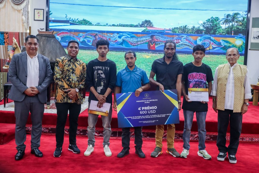Enkuantu manan na’in ba konkursu “𝙃𝙖𝙧𝙞’𝙞 𝙋á𝙨 𝙡𝙞𝙪 𝙝𝙪𝙨𝙞 𝘼𝙧𝙩𝙚 𝙋𝙪𝙗𝙡𝙞𝙠𝙖” mak hanesan tuir mai ne’e: 1º Lugar husi Munisípiu Díli ho valor Orsamentu hamutuk ($1.500): 2º Lugar husi Munisípiu Liquiça ho valorOrsamentuhamutuk ($1.000): 3º Lugar husi Munisípiu Manufahi ho valor Orsamentu hamutuk ($800): no 4º Lugar husi Munisípiu Lautém ho valor Orsamentuhamutuk ($600).