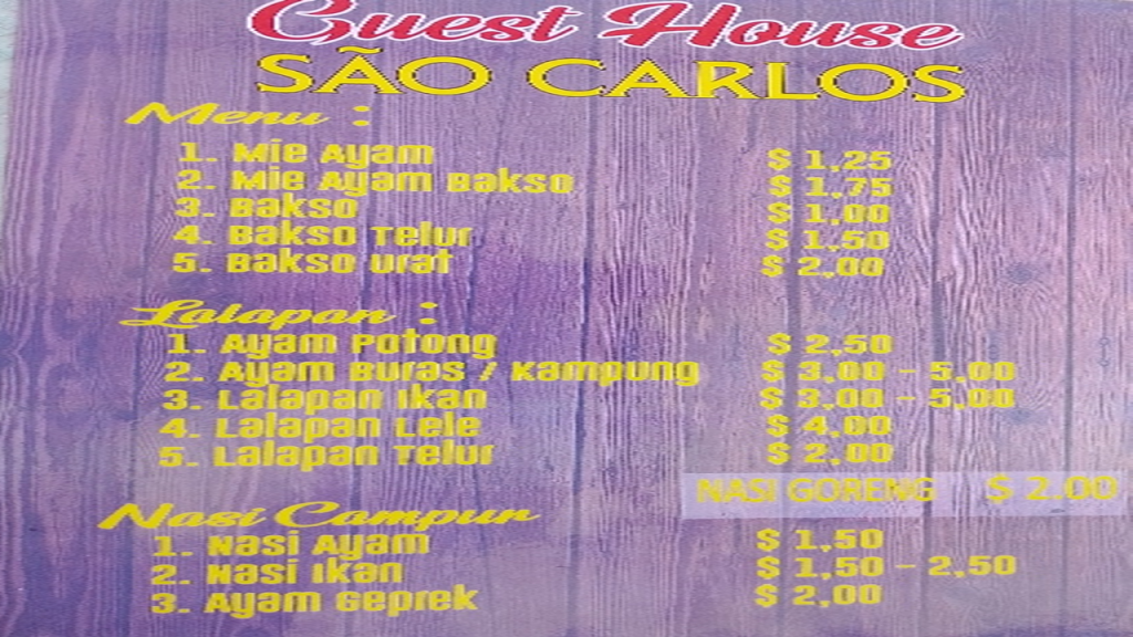 Restaurante Guest House iramiri (Sao Carlos) lokaliza iha Postu Administrativu Lospalos, Suku Fuiloro (Central)