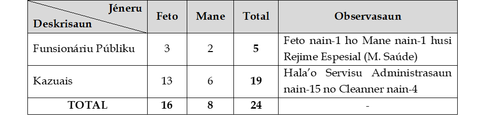 Forsa traballu atual (2026) husi Servisu Munisipál Administrasaun no Rekursu Umanu Lautém nian mak hanesan iha tabela tuir mai :
