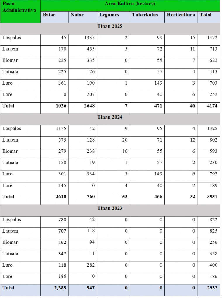 Area Agricola kultivu/ Utilizadu Tinan 2023-2025