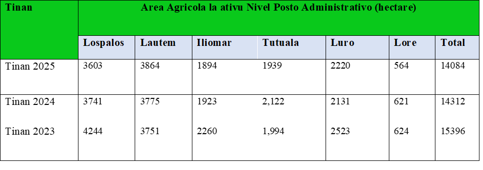 Area Agricola la ativu/ Abandona Tinan 2023 to’o Tinan 2025