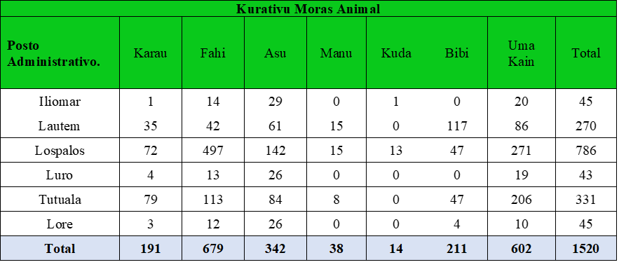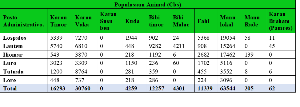 Dadus populasaun animal tinan 2025