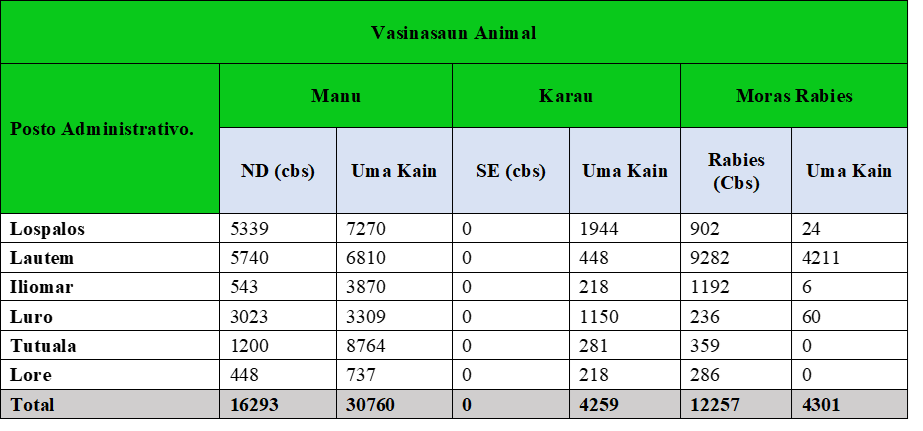 Dadus VASINASAUN animal tINAN 2025