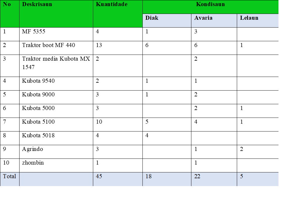 Kondisaun Traktor boot iha Servisu Municipal Agricultura